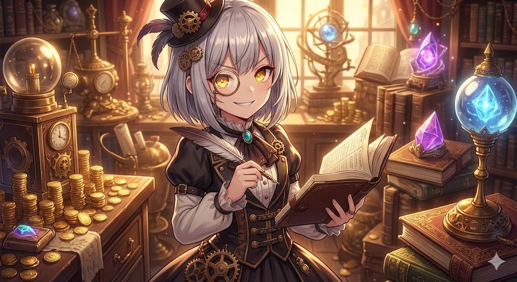 膨大な知識を体系化し、論理的な構成を組み上げる「知の要」。 貴方の頼れるパートナーです。 - リラ・ミリオネア(資産の鑑定士):